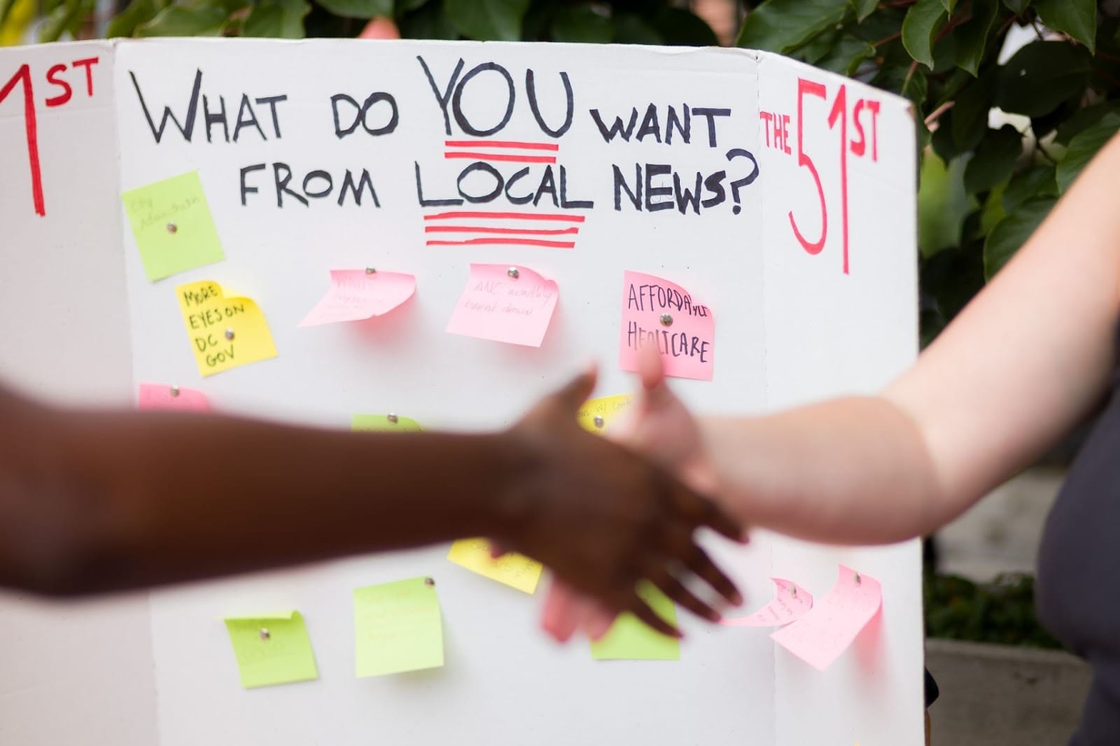 For our latest feature, we caught up with Christina Sturdivant Sani (pictured, left), executive editor of The 51st, and Maddie Poore (pictured, right), director of development at The 51st. The 51st is innovative on many fronts, being a worker-led nonprofit with seed money from a successful crowdfunding campaign that raised more than $275,000. The news website, which covers the District of Columbia (often considered the unofficial 51st state), was founded by six former staffers from DCist after it was shut down by the local public radio station WAMU in February 2024. Christina and Maddie discussed their newsroom’s worker-led structure, the popularity of a story about a restaurant’s “luscious” plant display, and plans to expand its “Community Connector” program to reach different groups of people across the District.