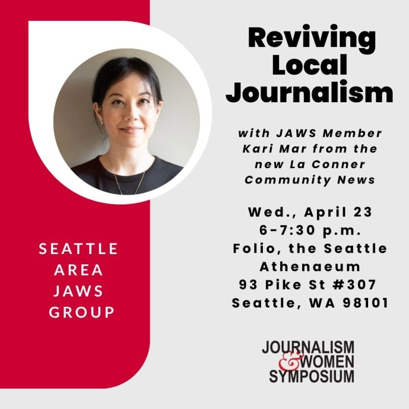 🚀 La Conner Community News, one of our newest members, was profiled by the Salish Current, celebrating its launch in March after the community’s weekly closed. Also, its editor and publisher Kari Mar recently spoke at the Journalism & Women Symposium (JAWS) group in Seattle (see image above).
