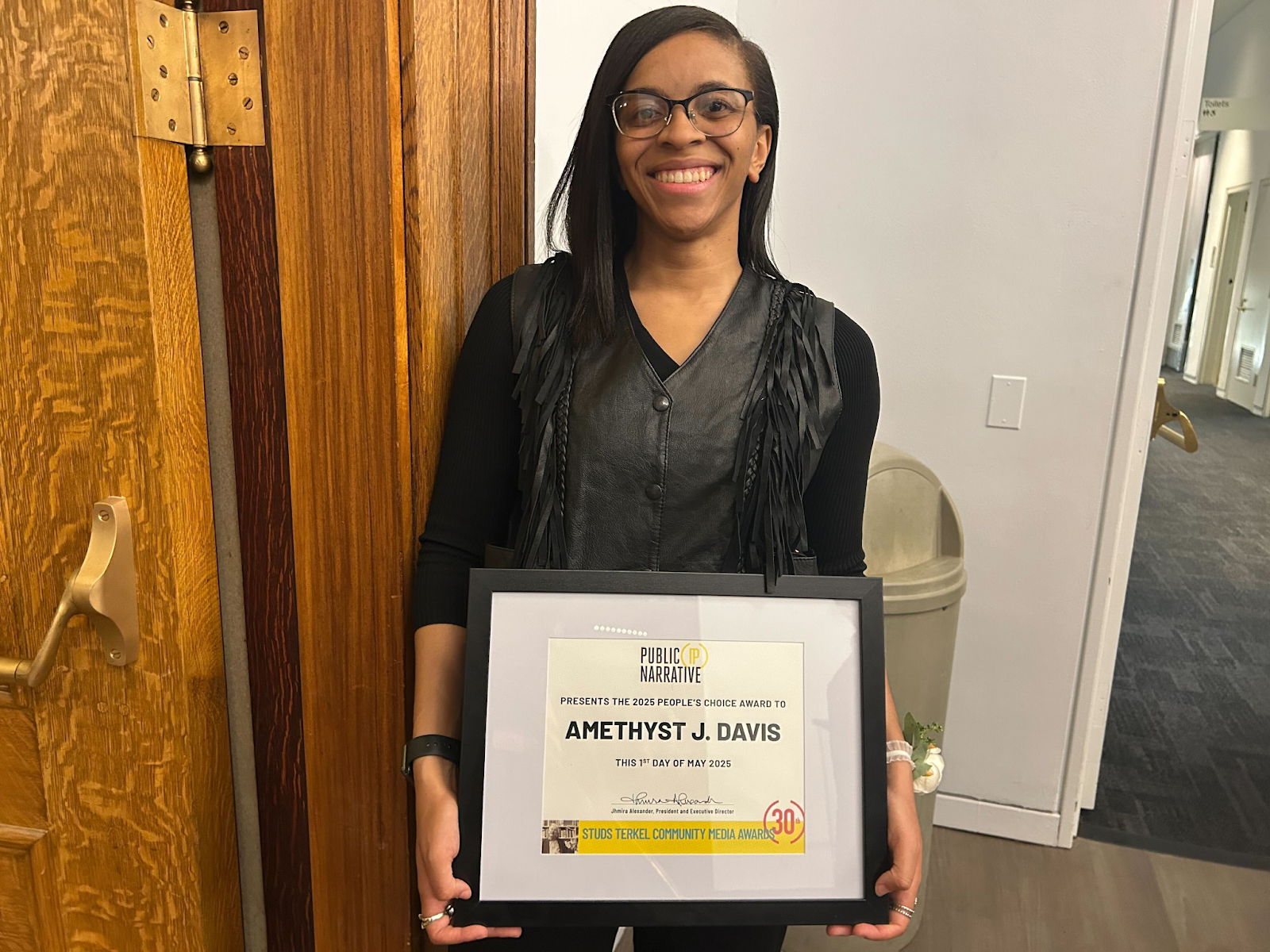 🏅Amethyst J. Davis of Harvey World Herald won the People’s Choice Award (in a tie!) at Public Narrative’s Community Media Awards (see image above, courtesy of Jason Tompkins).